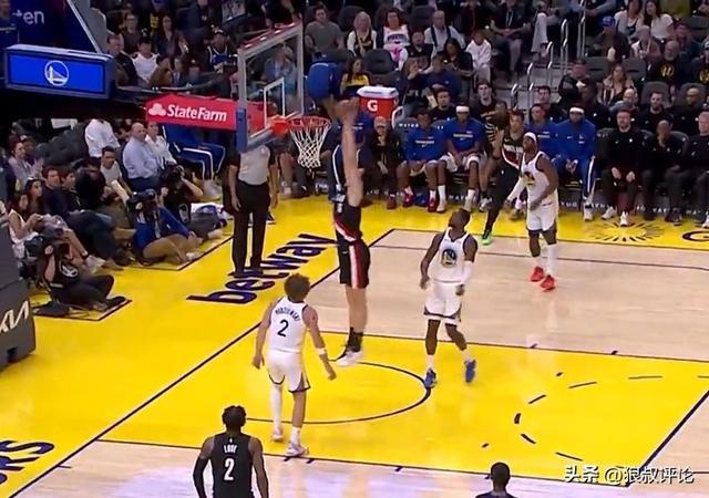第四节几乎是默认的替补阵容刷数据时间,裁判也非常识趣提升了比赛节奏,勇士队连续打出流畅的反击和三分球攻势,一波11-2上演追分好戏,比赛也重新回归到有悬念的状态。