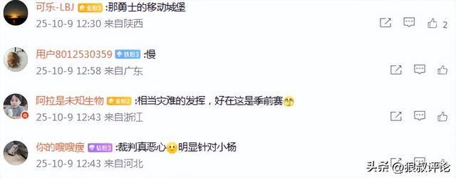 对于一个20岁的新秀球员,裁判几乎是用放大镜每一个动作都在杨瀚森身上追着吹罚,同样是引起了球迷吐槽。